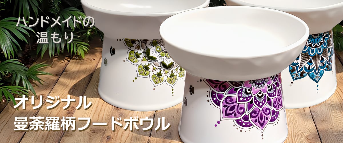 緻密で美しい曼荼羅デザインが、皆さまや愛猫ちゃんのお食事タイム・リラックスタイムを華やかに彩ります。