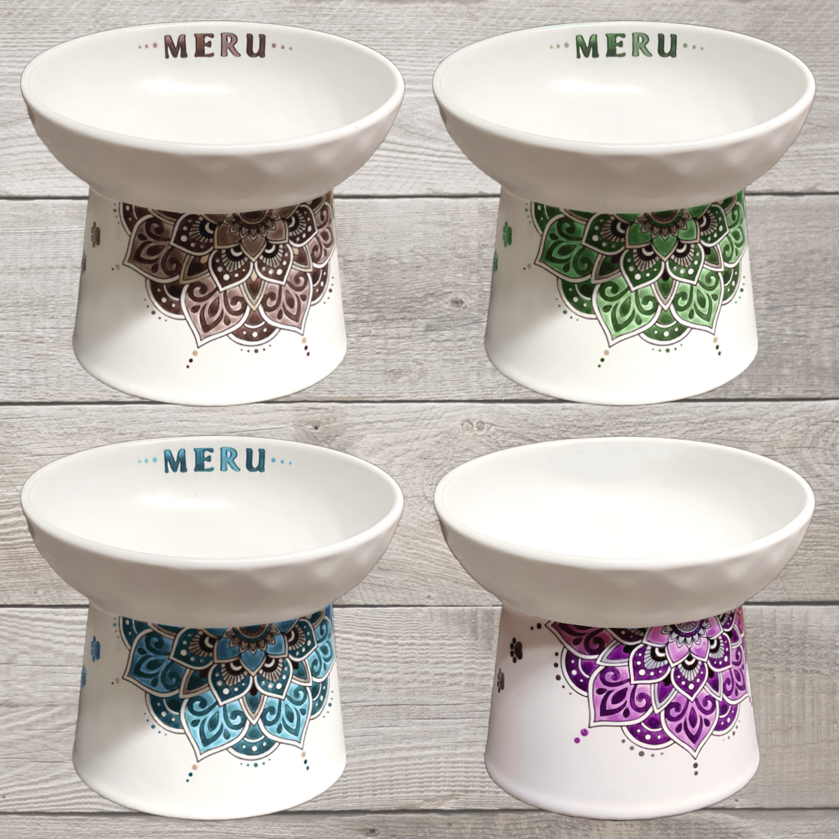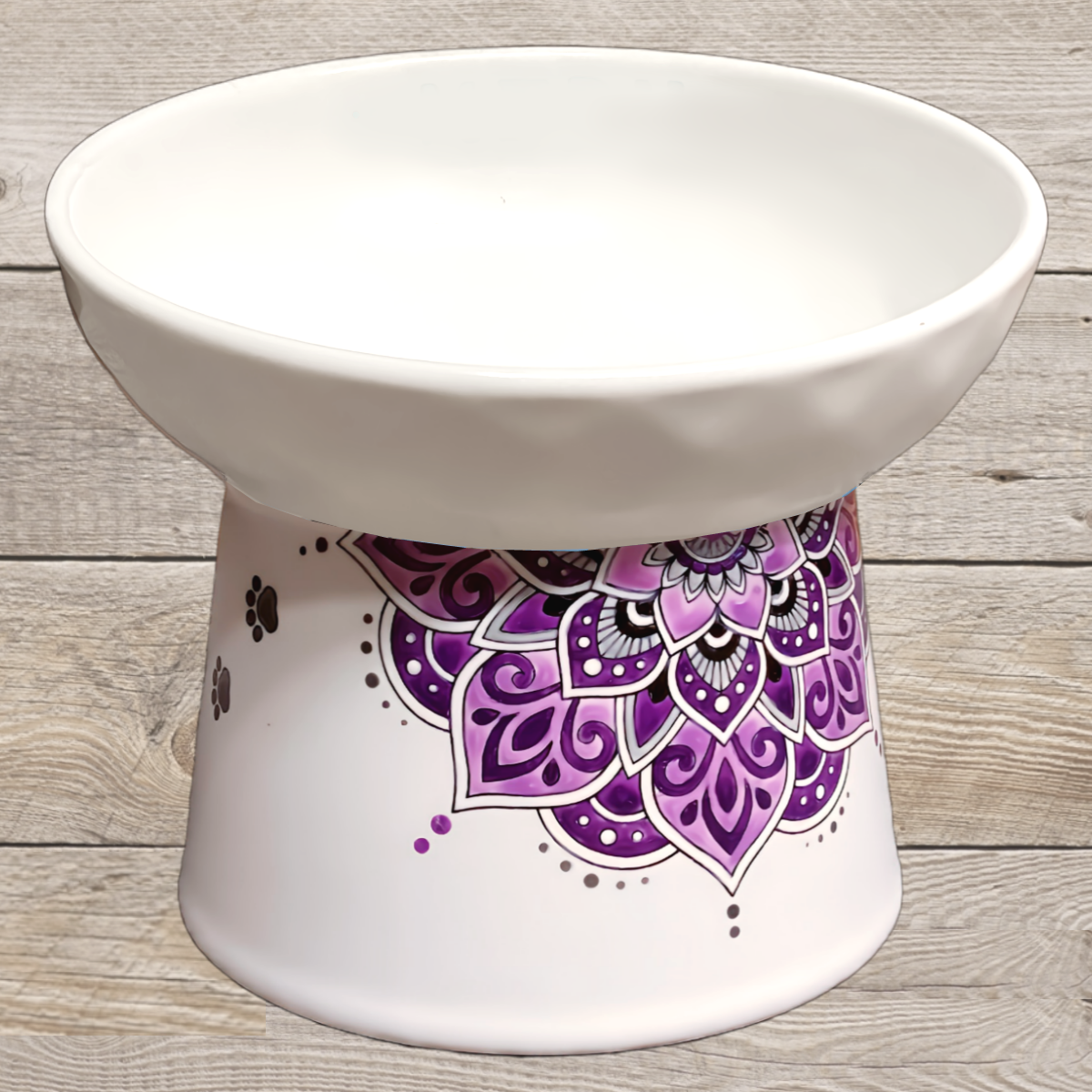 オリジナルアートを施した、猫ちゃん用の特別な食器です。デザインには曼荼羅モチーフを使用しており、お食事タイムに華やかな彩りを添えます♪