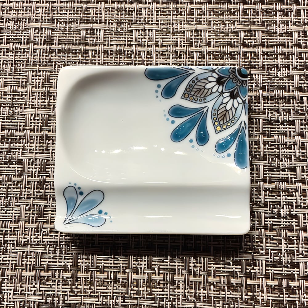 オリジナルアートを施した箸置き小皿です。デザインには曼荼羅モチーフを使用しており、皆さまのお食事タイムに華やかな彩りを添えます♪